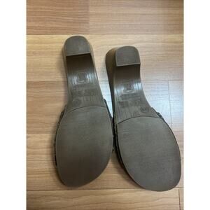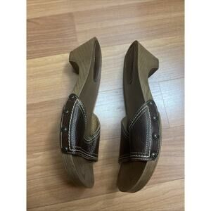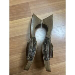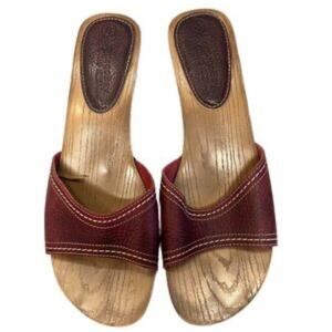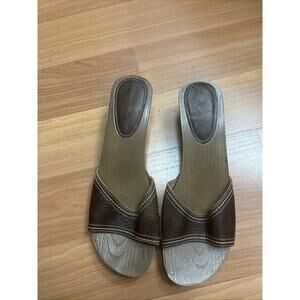 Montego Bay Club Leather Wood Cuban Heels Slides Sandals Brown Size 9.5 NWOB