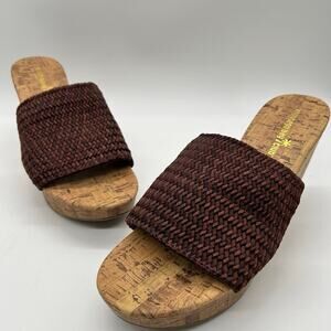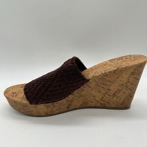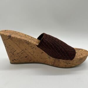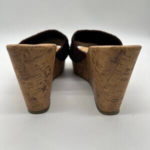Montego Bay Club Sandals Womens 9.5 Brown Open Toe Wedge Woven Sandal