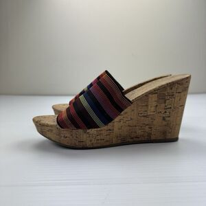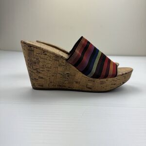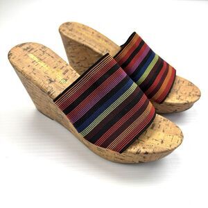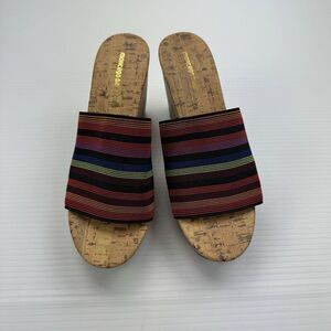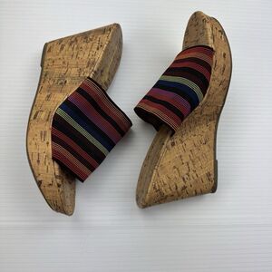Montego Bay Club Size 7.5 Mule Wedge Colorful Stripe Open Toe Heels Cork 90s Y2K