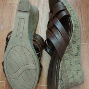 Strappy slide-on sandals are super comfy and have good support with the wide wedge bottom.