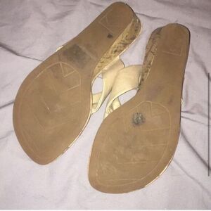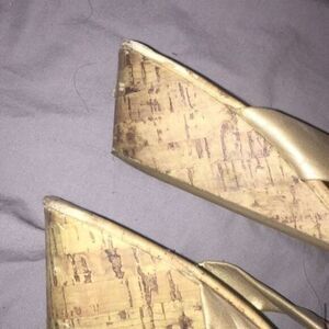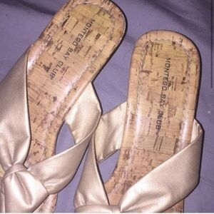 Montego Bay Club women's gold metallic thong style low cork wedge heel size