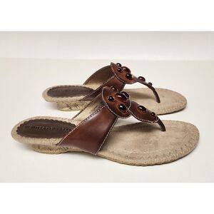 Montego Bay Club Sabrina Gemstones & Leather Flip Flops Sandal Shoes Size 6