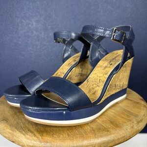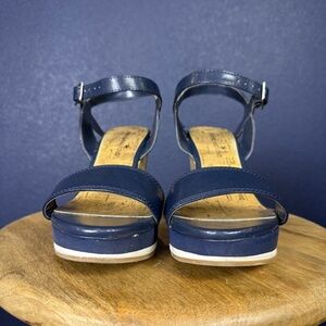 Cute navy wedges with buckle strap. Comfortable cork wedge.