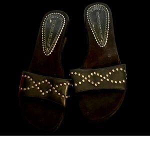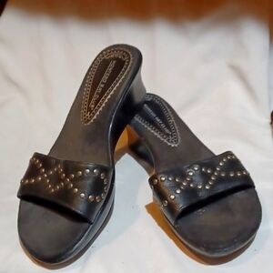 Montego Bay Womans Club Sandals Wedge Black Studded Size 6 .5 M