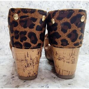 Montego Bay Club 6.5 Cork Wedge Sandals Leopard Print Brown Black 2" Heel