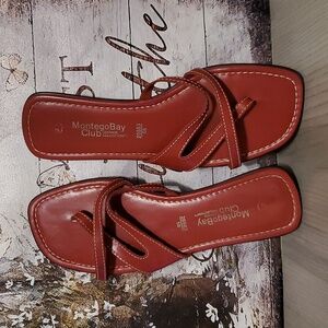 MontegoBay Club Leather Collection Red Sandals 9.5 Pre-owned (WS30)