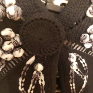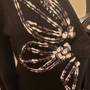 Monterey Bay Black & White Butterfly One Snap Closure Cardigan/Sweater, Size XL