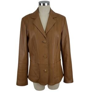 Monterey Bay Brown Genuine Leather Single Breasted Blazer Size 10T Tailored EUC