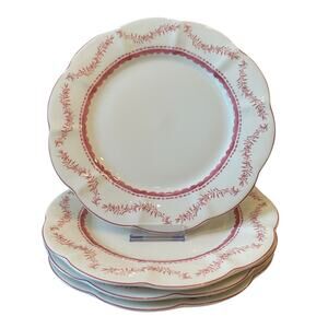 Monterey Bay Porcelain Christmas Dinner Plates 10.5in Pink & White Set of 4 NEW