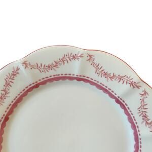 Add a festive touch to your holiday table with this Monterey Bay 4pc Christmas Dinner Plate Set in elegant pink and white. Crafted from fine porcelain with scalloped edges and contrast trim, these 10.5" plates are both dishwasher and microwave-safe—perfect for everyday use or special holiday gatherings. Brand new and imported, this beautiful set makes a wonderful gift or addition to your Christmas dinnerware collection.