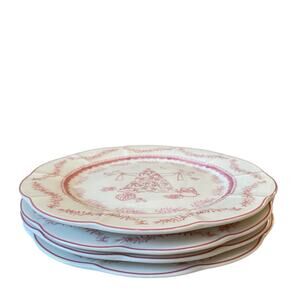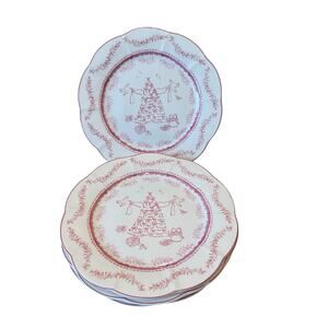Monterey Bay Porcelain Christmas Salad Plates 8.5in Pink & White NEW