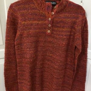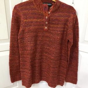 NWOT Monterey Bay rust marled pullover sweater with different subtle colors in subtle stripes ( see Pic 6). Five button closure at neckline and extra button included.