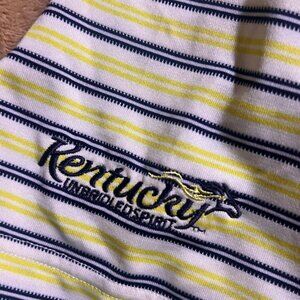 Elevate your golf apparel with this Monterey Club Men's XL Stripe Kentucky State Park Golf Trail General Burnside Golf Polo. Styled for performance and designed for comfort, this golf polo features a vibrant combination of yellow and white stripes, accented by a sophisticated hint of blue, creating a striking appearance on the green. The classic white collar adds a touch of traditional golf elegance. Crafted from a lightweight and breathable material, this shirt provides excellent mobility for your golf swings and all-day wearability in various climates. The prestigious General Burnside logo is finely embroidered on the left chest, symbolizing your appreciation for the sport and the renowned KY State Park. A three-button placket and ribbed sleeve detail offer adjustable ventilation and contribute to the overall polished look.