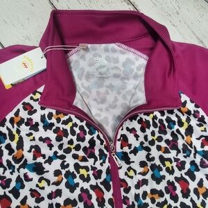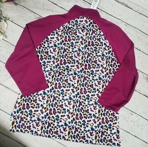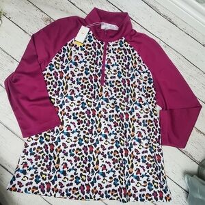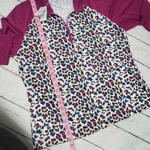 Monterey Club Women's Pro Leopard Print Block 3/4 Sleeve Zip Top. XL