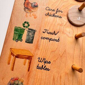 This chart is a visual representation to make it easier for kids who are not yet ready to read. Beautifully constructed using hardwood maple, this fits perfectly in a well prepared environment ready for them to take charge.