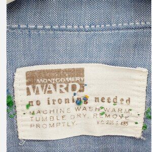 Vtg 70s Embroidered Chambray No-Iron BD LSV Women's Shirt Montgomery Ward M