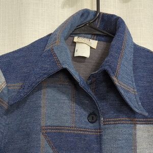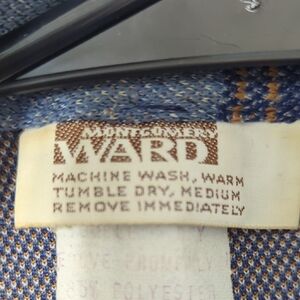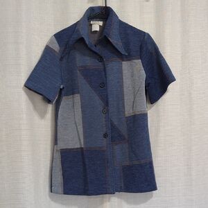 Montgomery Ward Women's Shirt Vintage Blue and Gray Short Sleeve Button-Up 14