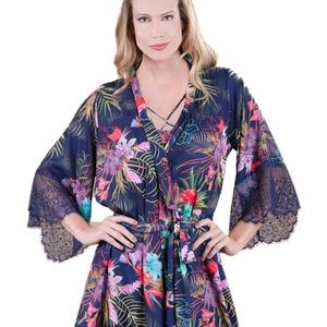I love the colorful and playful style of this sexy and high-end robe. It's detailed patterns and premium finish are perfect for a honeymoon or romantic get away or just to make your night extra special. This is not a bathrobe. Combine with the Ember Nightgown. Easy to care for.