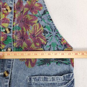 Monthorigin Overalls Womens Large Blue Floral Print Bibs Denim Distressed Casual