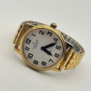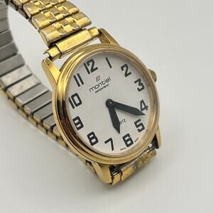 Montiel Swiss Made Gold Tone St. Steel Sapphire Crystal Kids Watch 29mm Working