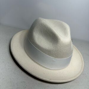 Montique White Color 2 1/2 Inch Wide Brim Wool Felt Hat SZ L PN 114874