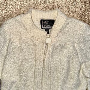 Monto Por Le Chois Women's Vintage Boucle Knit Cardigan Sweater in White Medium