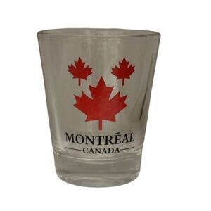 Montreal Canada Red Maple Leaf Shot Glass. Clear glass with red maple leaf decals. No chips or cracks.