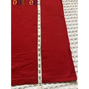 The Montreal Canada T-shirt is a vintage item with an embroidered rainbow logo, perfect as a souvenir from the 1980s. Made of 100% cotton knit fabric with a crew neck and short sleeves, this red shirt in size M features a regular fit and is machine washable. The shirt is a piece of Canadian history with a theme of Canada and the 80s, making it a unique and collectible item for any unisex adult looking to add a touch of retro charm to their wardrobe.