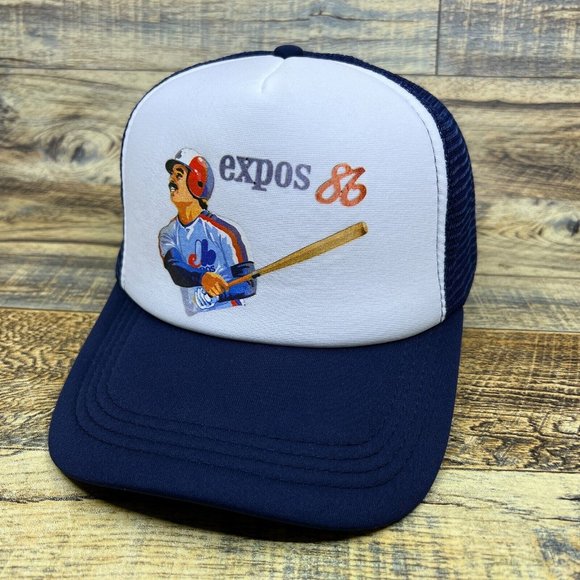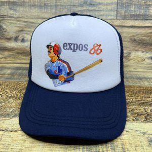 Montreal Expos Mens Trucker Hat Navy Snapback 1986 Logo Canadian Baseball Cap
