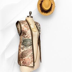 Montsuki Honolulu Vest Silk Samurai Inspired Lotus Brocade Rayon NWT 1970s