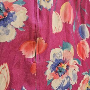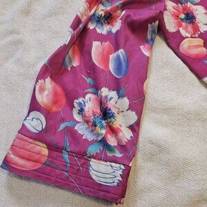 Moo Moo Womens Dress Robe Nightgown XL Used Fuchsia W/ Tulips Peoney's Handmade