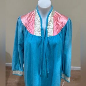 Mood setter blue Vintage Zip Up Robe Womens Housecoat robe Mrs Roper 70s
