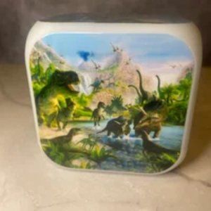 Note: Actual clock has prehistoric artwork compared to picture on box (see photos).