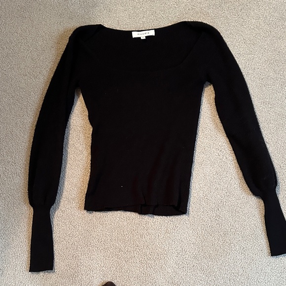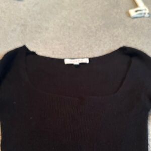 This sweater is so soft and cozy . Perfect for layering. Scoop neck, last picture is just to give you an example of what it looks like on.