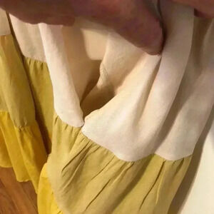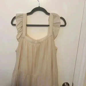 Moodie tiered maxi dress. Sleeveless. Square neckline. Lined. Two open side pockets! Colors are off white/light yellow/gold. Size L