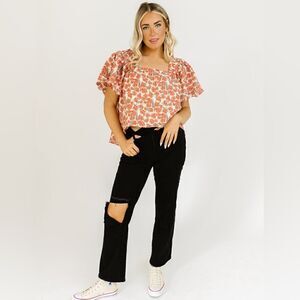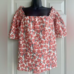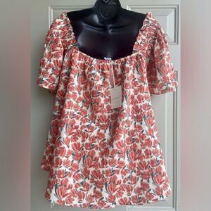 Polyester, cotton, cotton lining, fabric has no stretch, fits true to size.