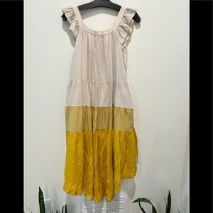 Moodie High Low Tiered Colorblock Square Collar Midi Dress XS