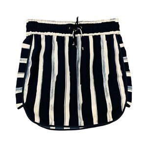 Moods Of Norway Skirt Womens 36 US 4 Navy Curved Hem Striped Drawstring Lined