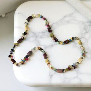 Mookaite & Gemstone Chip Necklace – 26" Boho Earthtone Strand