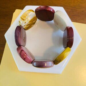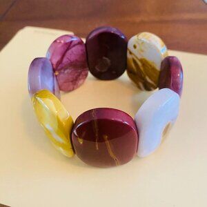 Fabulous chunky Mookaite Jasper stretch bracelet. Each oval piece of jasper is large and measures approx. 1" x 1.5"