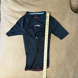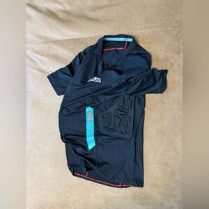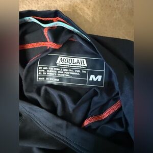 Get ready to hit the court with this Moolah Women's Padded Compression Top in size medium. The black short-sleeved t-shirt features a crew neck and pullover closure, making it easy to wear and comfortable. The padded top is made of a cool and breathable polyester, spandex, and elastane fabric, perfect for basketball performance and other activewear occasions in the summer, fall, and spring seasons.