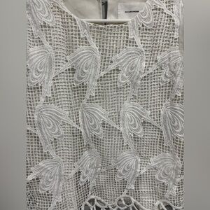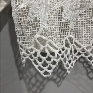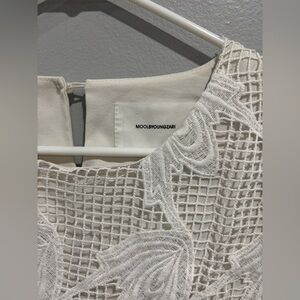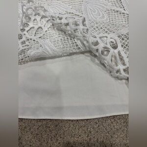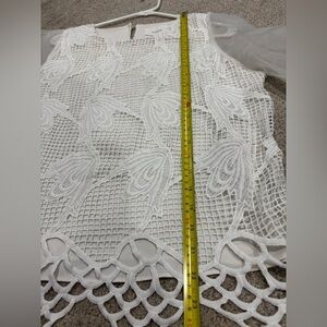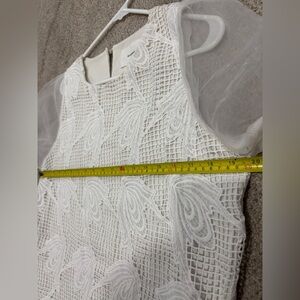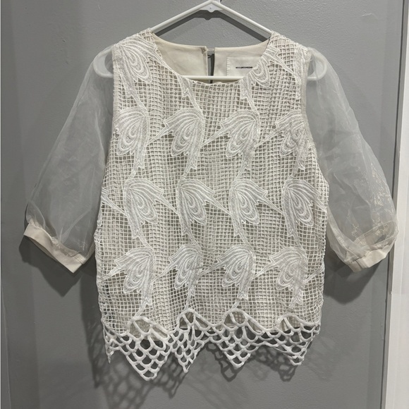 MoolbyYoungZari white sheer lace floral overlay puff sleeve night out party. Good preowned condition. No rips,