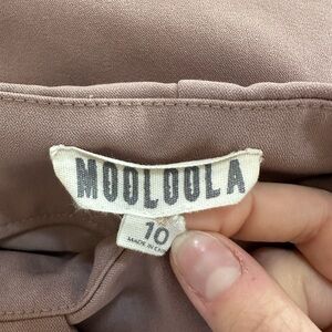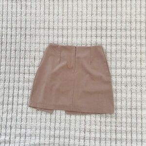 Chic mini wrap skirt by Loola. Soft tan color. Perfect for casual outings.