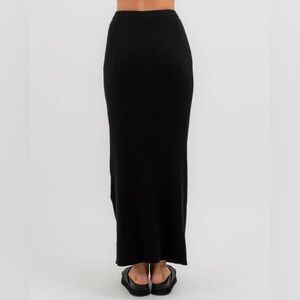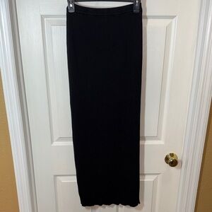 Elegant black ribbed maxi skirt with button-down detail. Perfect for any occasion. In excellent condition, no rips, stains, or flaws.