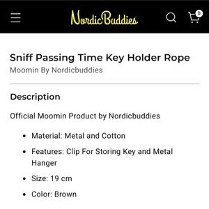 Brand new authentic Moomin key holder rope, never used. Print: Sniff passing time. Color: brown