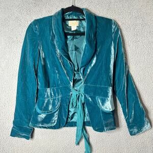 Moon Blazer Womens S Turquoise 100% Silk Velvet Tie Front Formal Blazer