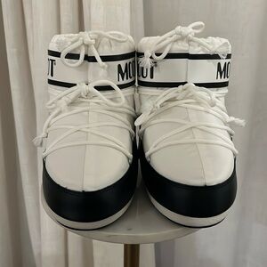 Stylish winter boots. Black and white design. Durable and warm. Perfect for cold weather.