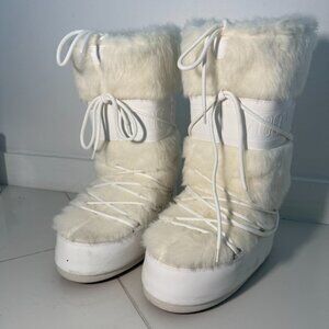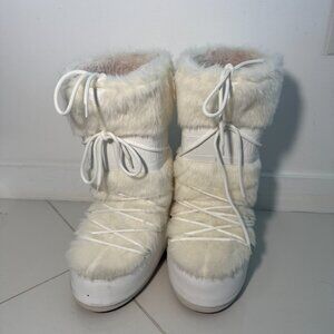 Moon Boot Women’s Classic Faux Fur Snow Boots – White – Size fits between 9/10.5