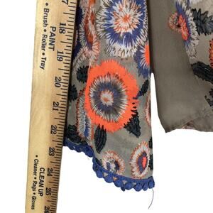 Moon Collection Blouse Sz S Tan Sheer Embroidered Colorful Floral Boho Festival