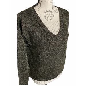 Moon Collection CS2401 Black Gold Shimmer V-neck Hi-Low Sweater Size Small New